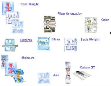 Sensores ABB para medición en línea de gramaje, humedad, calibre/espesor, ceniza, color, brillo, opacidad, etc, en todas sus versiones